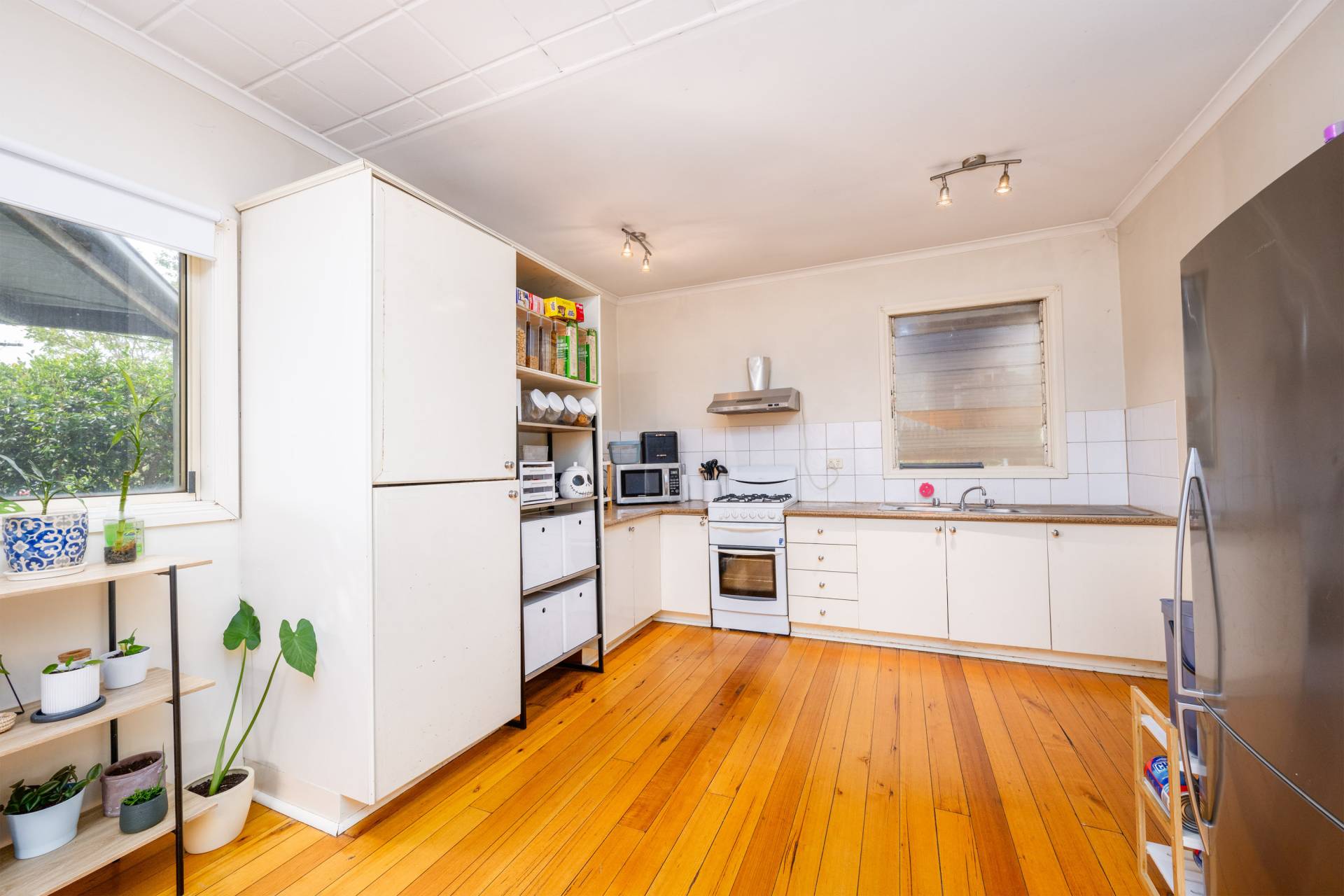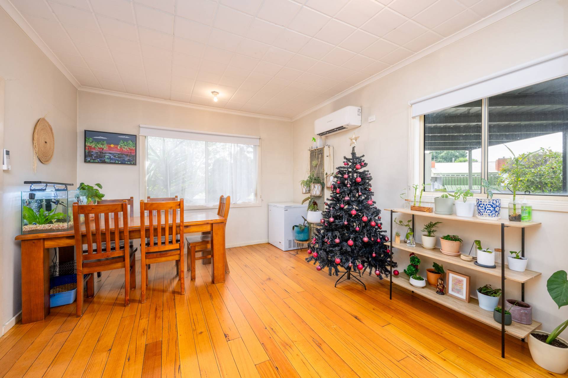 This two bedroom home also features a small study, polished floorboards and a good size open plan kitchen/dining area with gas cooking. The main bedroom has a split system for year round heating and cooling and there is another split system in the dining/living area.