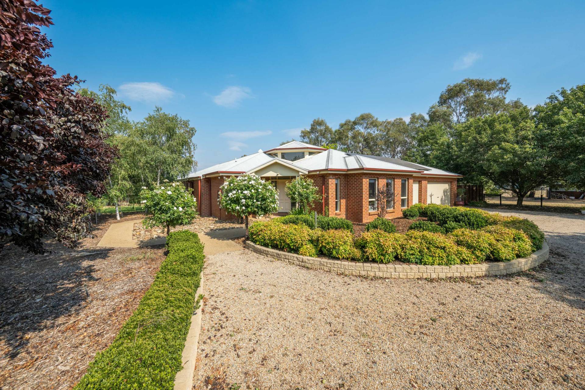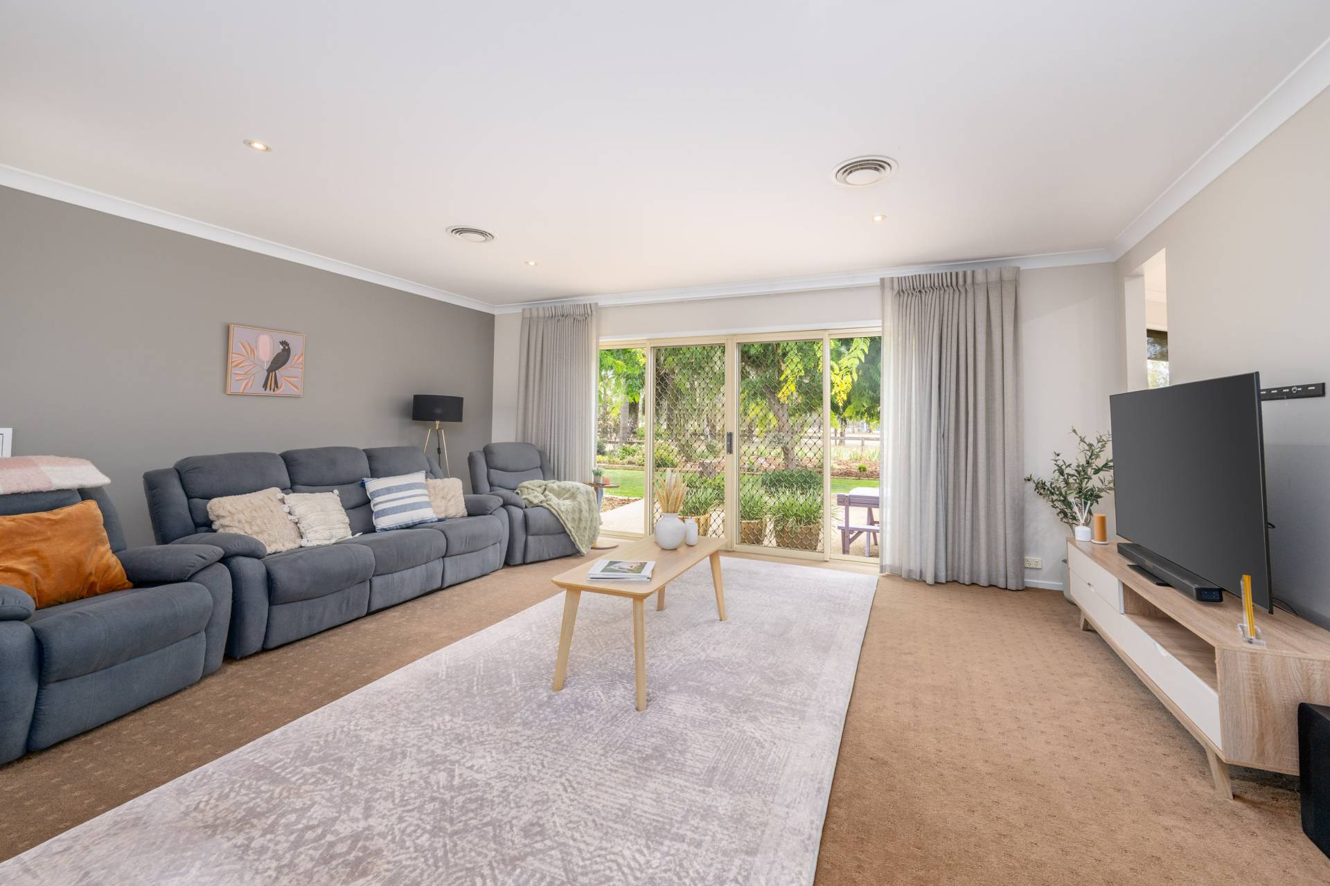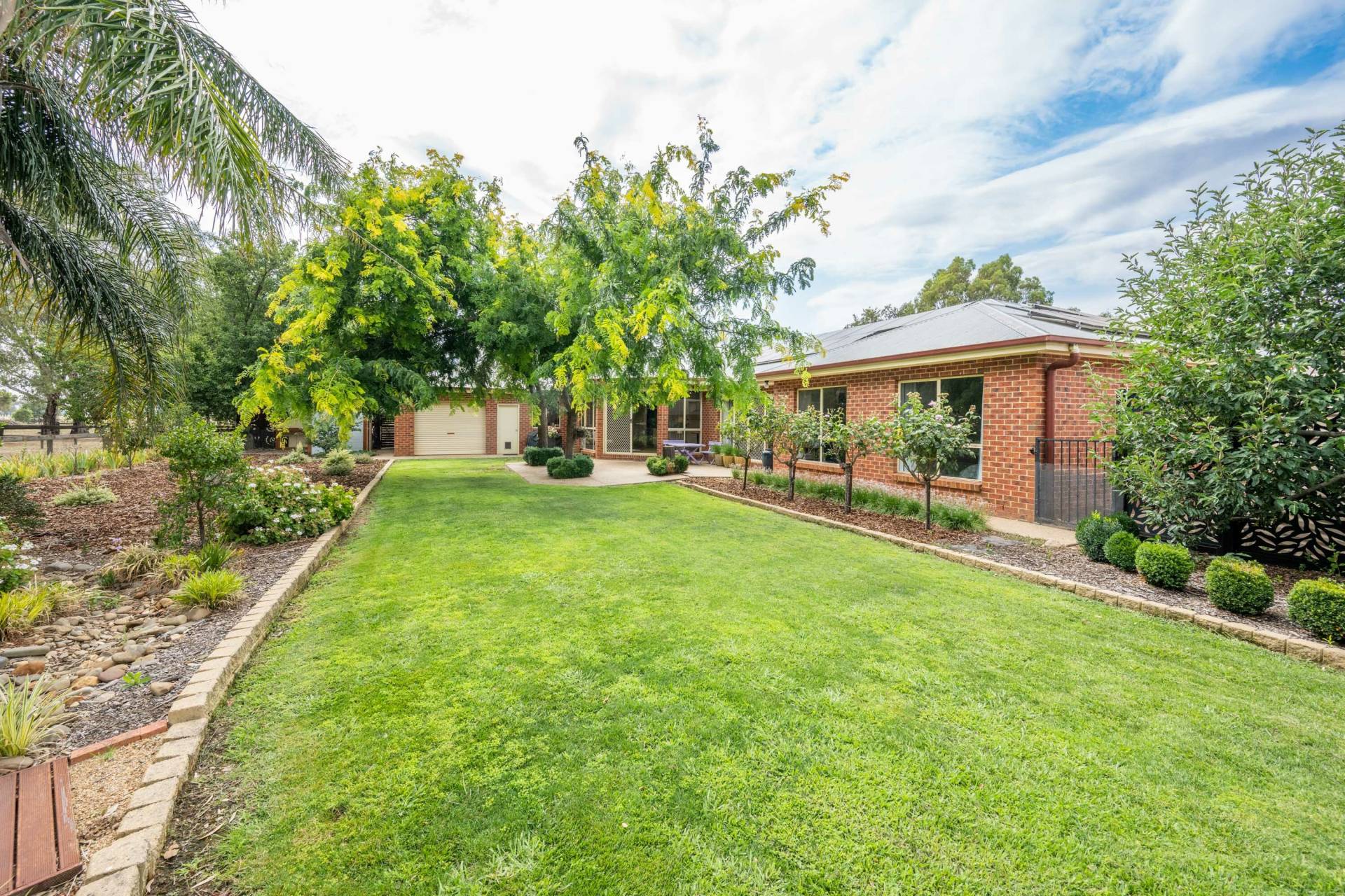 The established gardens are a standout feature, with manicured lawns, landscaped garden beds, and a fully irrigated system with automatic watering throughout, ensuring ease of maintenance all year round.