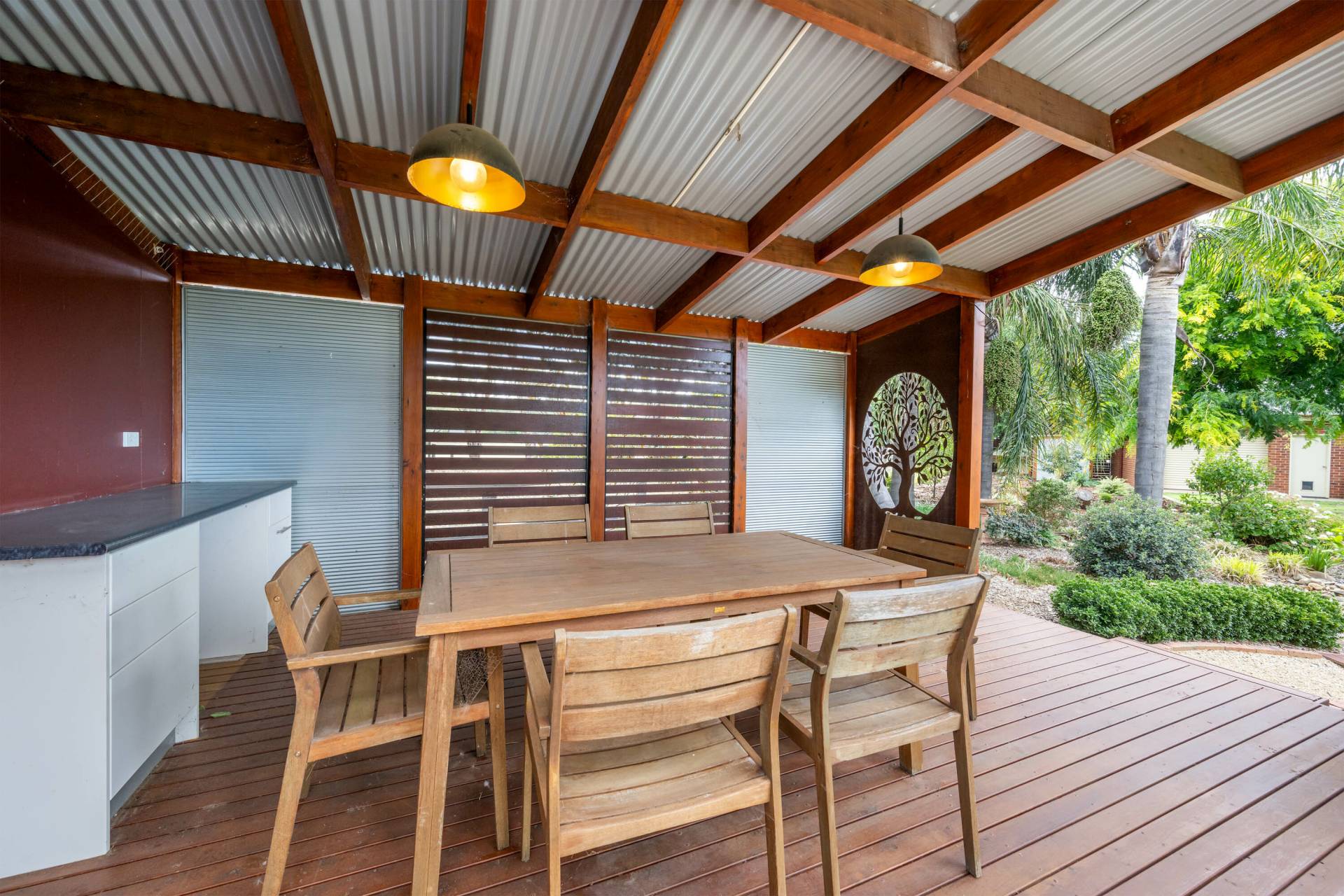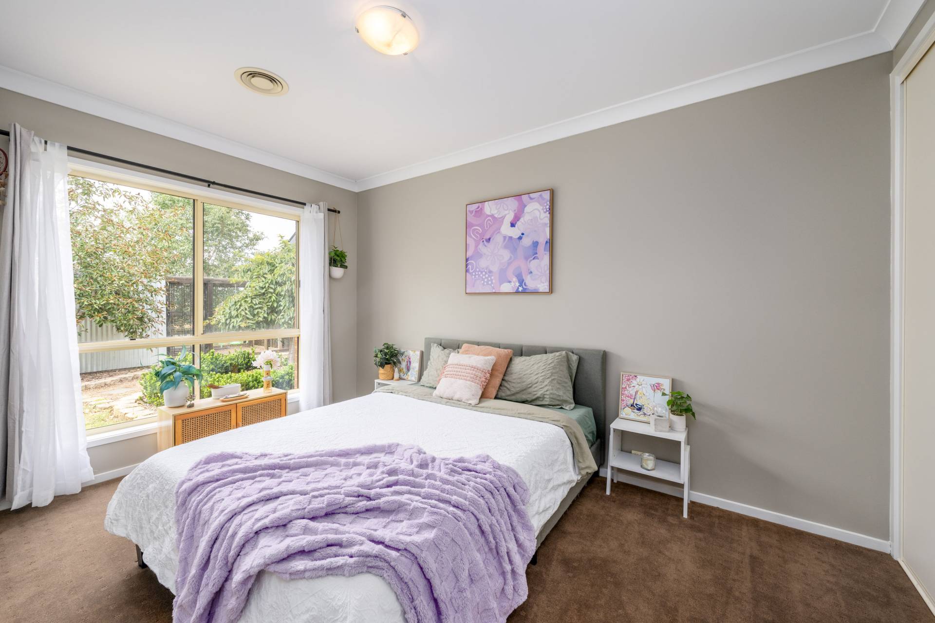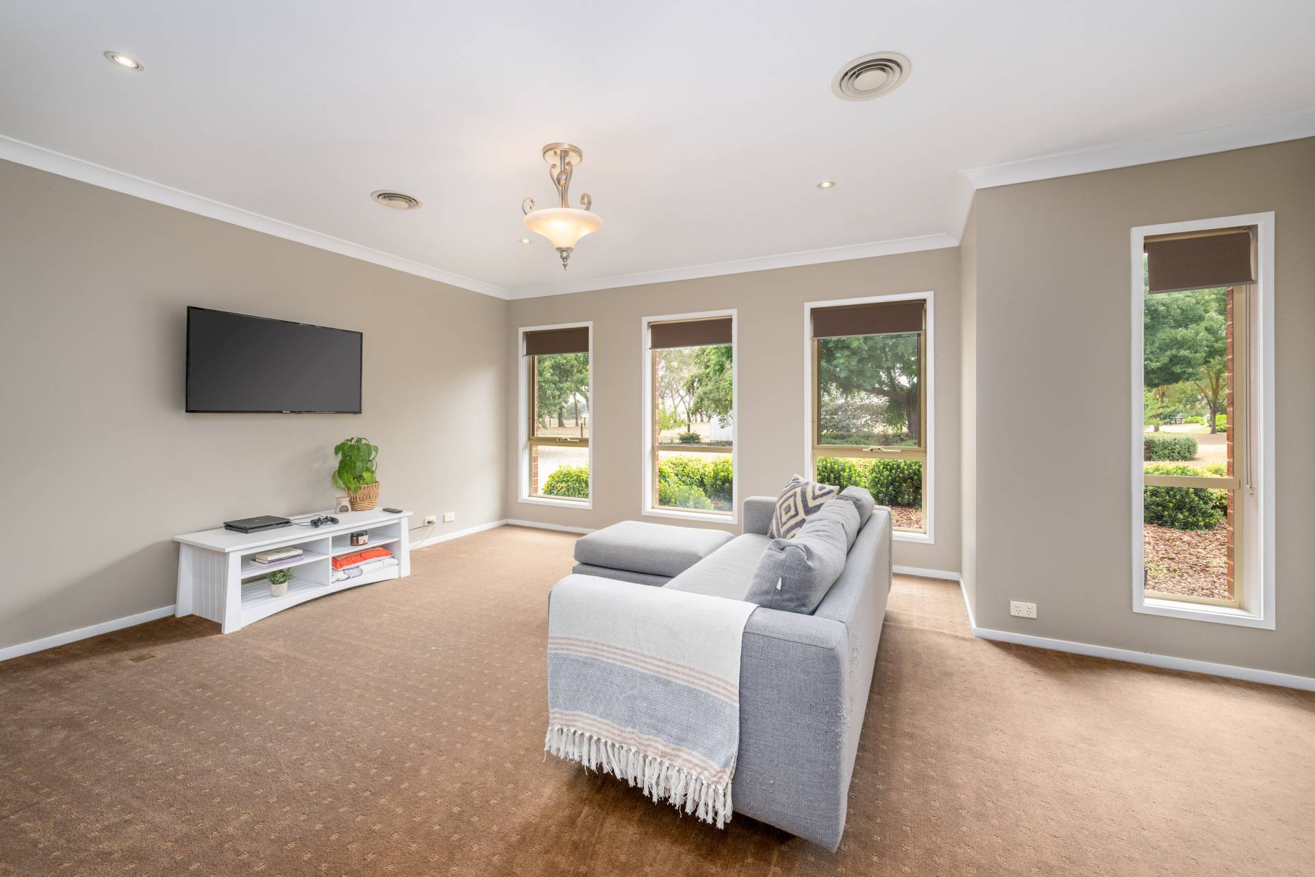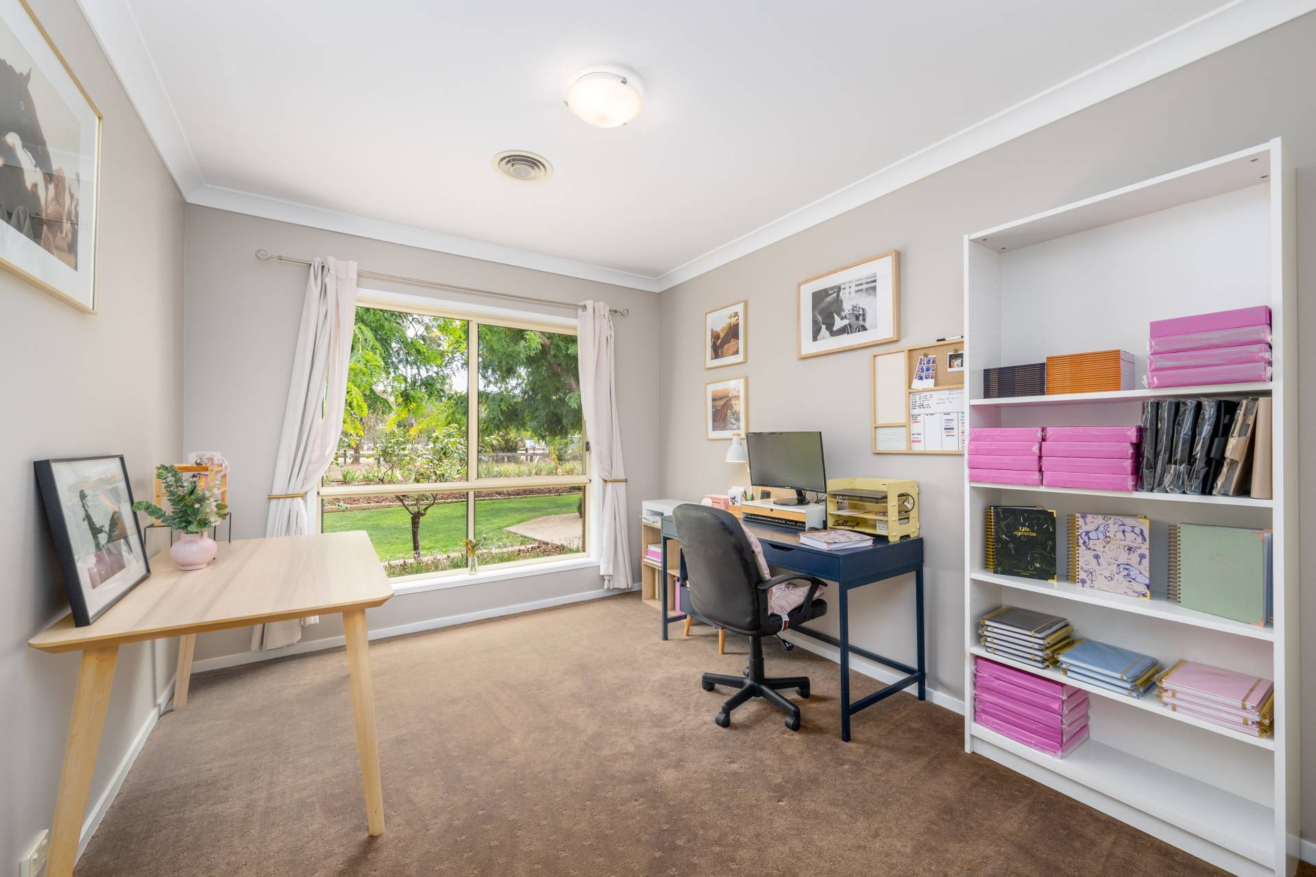 The established gardens are a standout feature, with manicured lawns, landscaped garden beds, and a fully irrigated system with automatic watering throughout, ensuring ease of maintenance all year round.