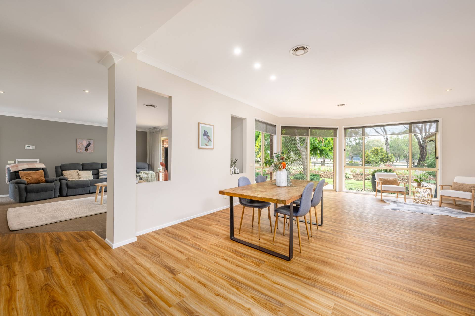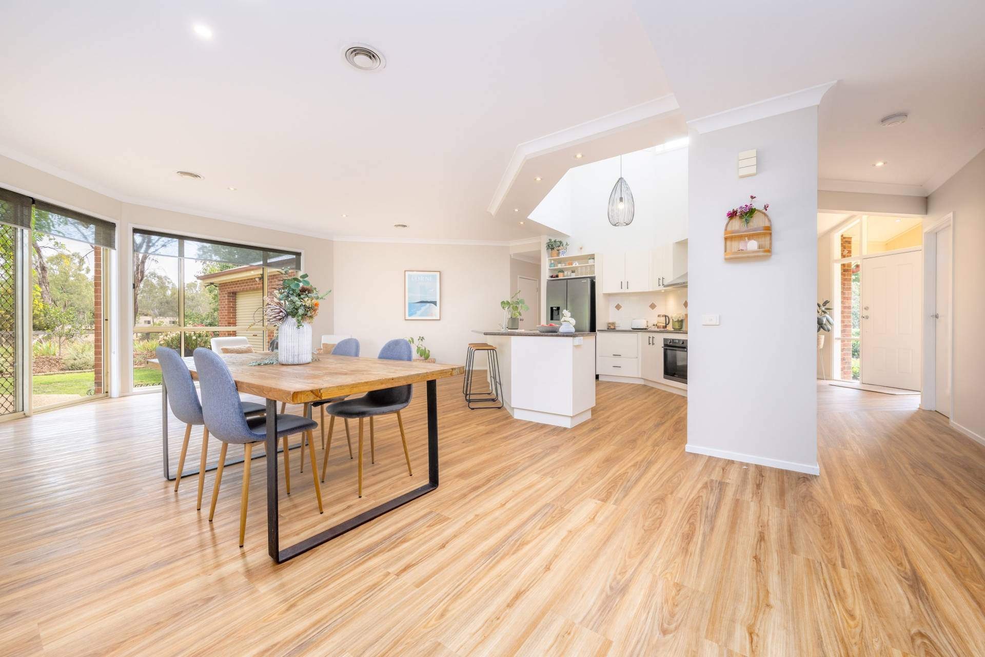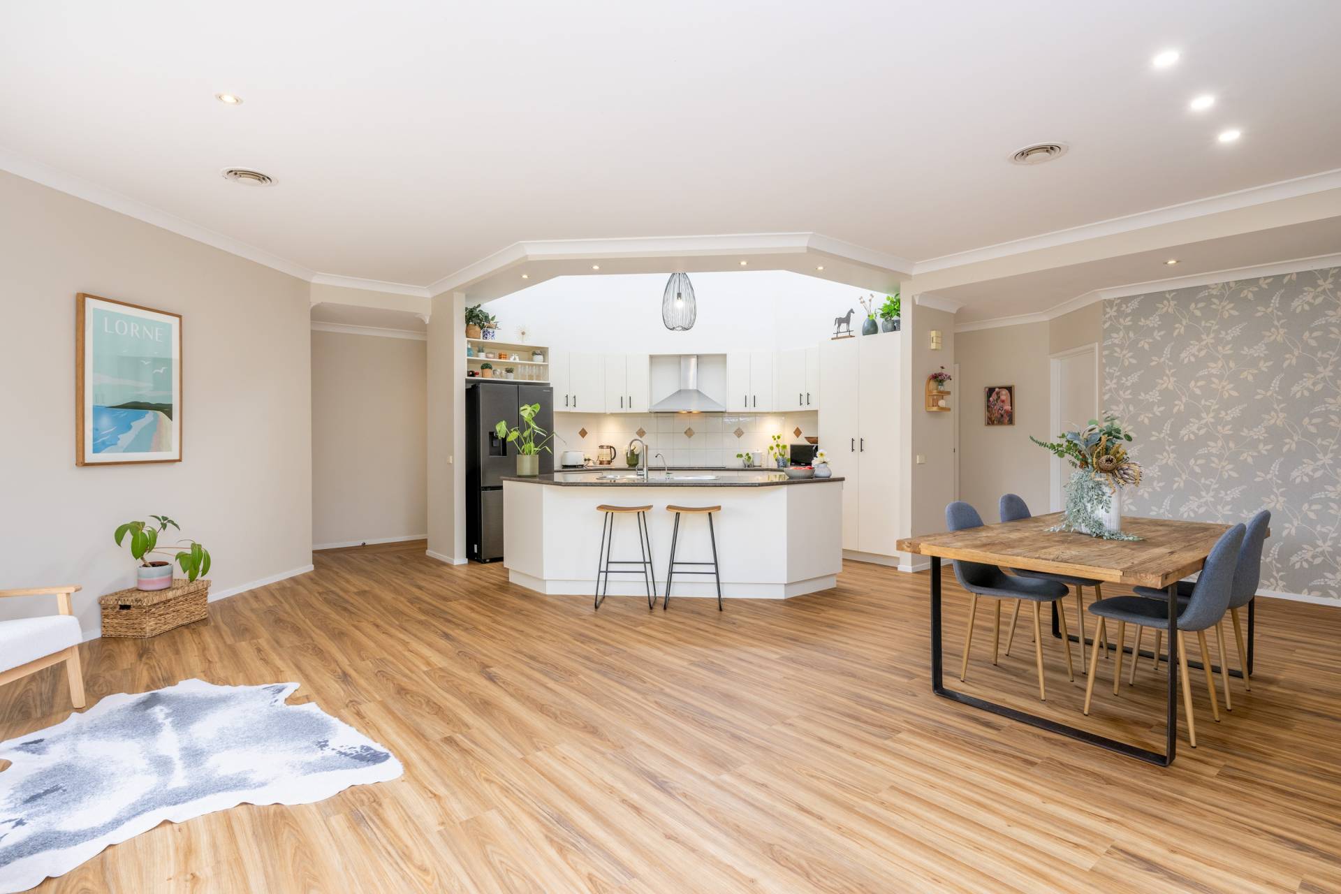 The spacious family home with some new flooring is warm, inviting, and designed to accommodate growing families or those who love to entertain. It offers four generous bedrooms plus a study, two bathrooms, and an additional powder room. Multiple living zones — three separate living areas — provide flexibility for family living, entertaining, or working from home.