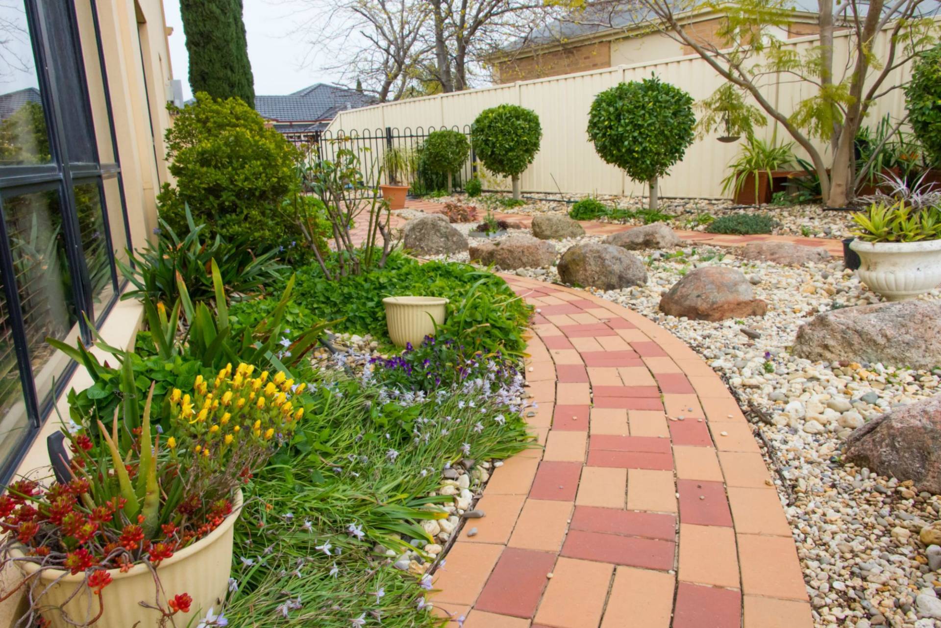 Cooking is made easy in the well-designed kitchen, featuring stone bench tops and plenty cupboard storage.