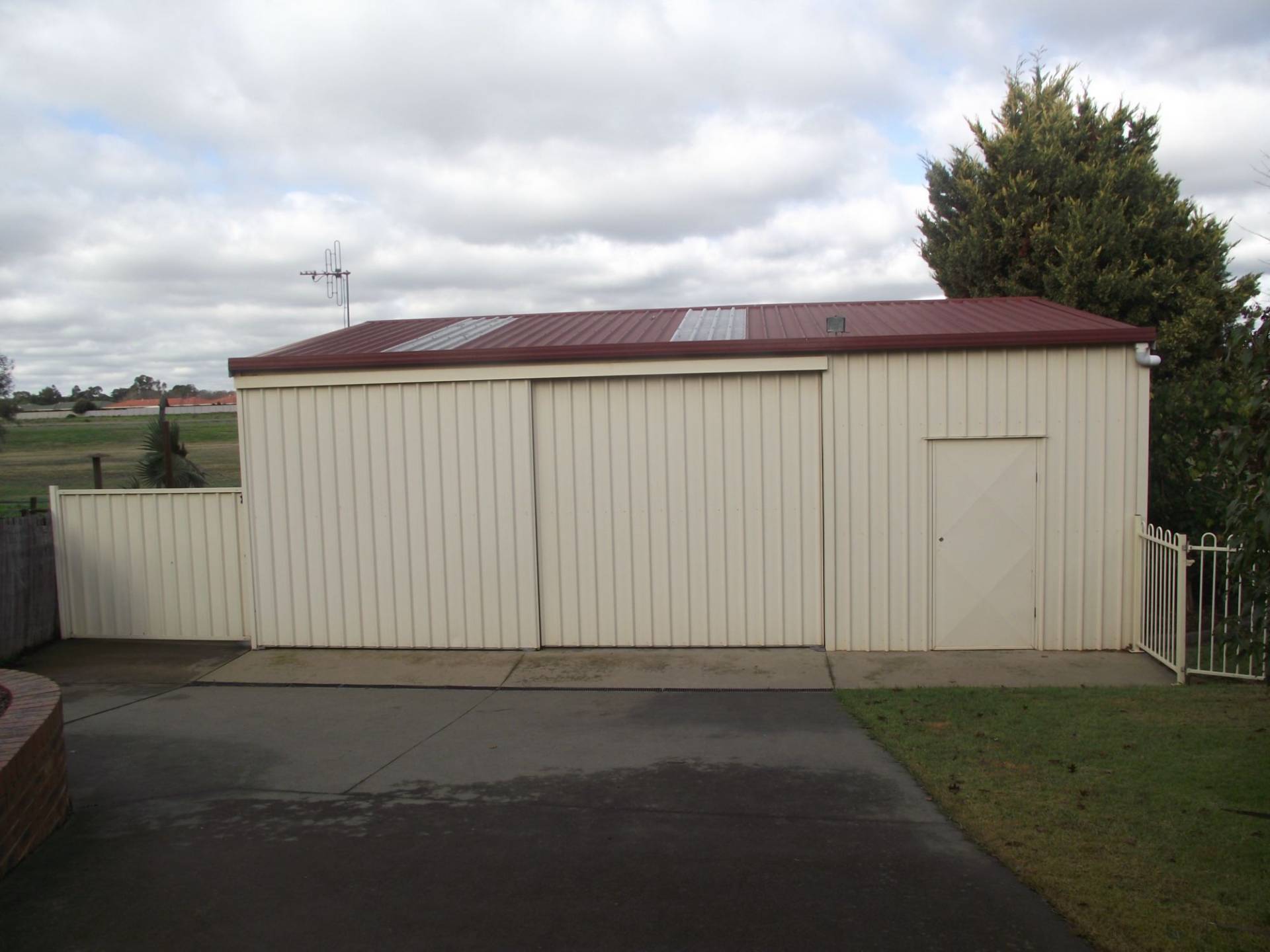 Double car garage with capacity to fit up to 4 vehicles. Large 8m x 7.7m x 3m coulou bond shed with mezzanine floor.