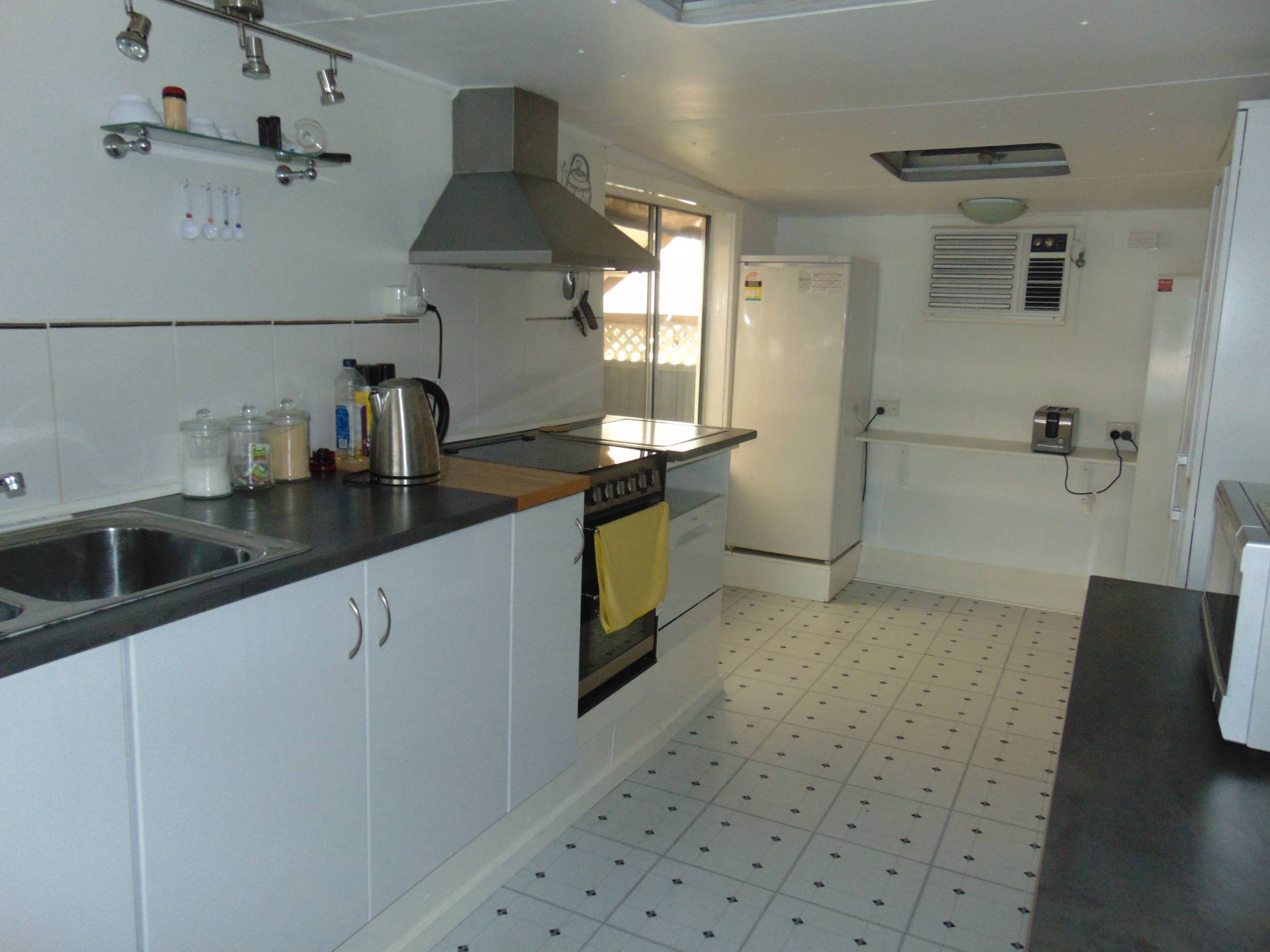 The modern updated stylish kitchen contains a dishwasher, stove and a fridge and freezer set which comes with the dwelling. The dining room overlooks the kitchen and storage is in abundance in this home.
